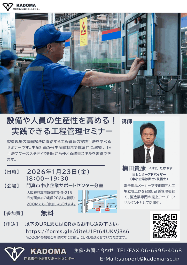 本セミナーでは、生産性向上の鍵となる工程管理を、生産計画と生産統制の両面から体系的に解説します。IE手法や工程分析などの実践的技術に加え、ケーススタディを通じて、現場ですぐに活用できる改善手法を習得いただけます。