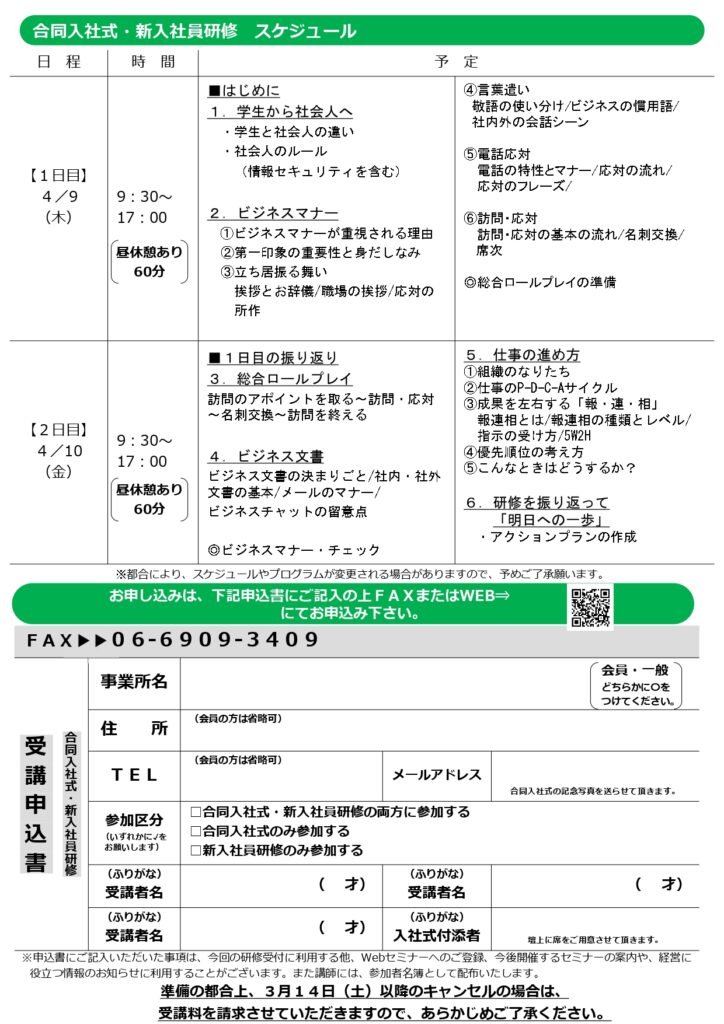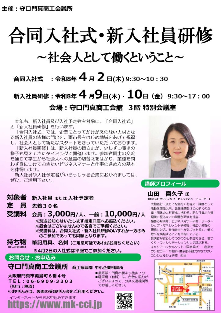 (令和8年4月)合同入社式・新入社員研修のご案内【守口門真商工会議所】